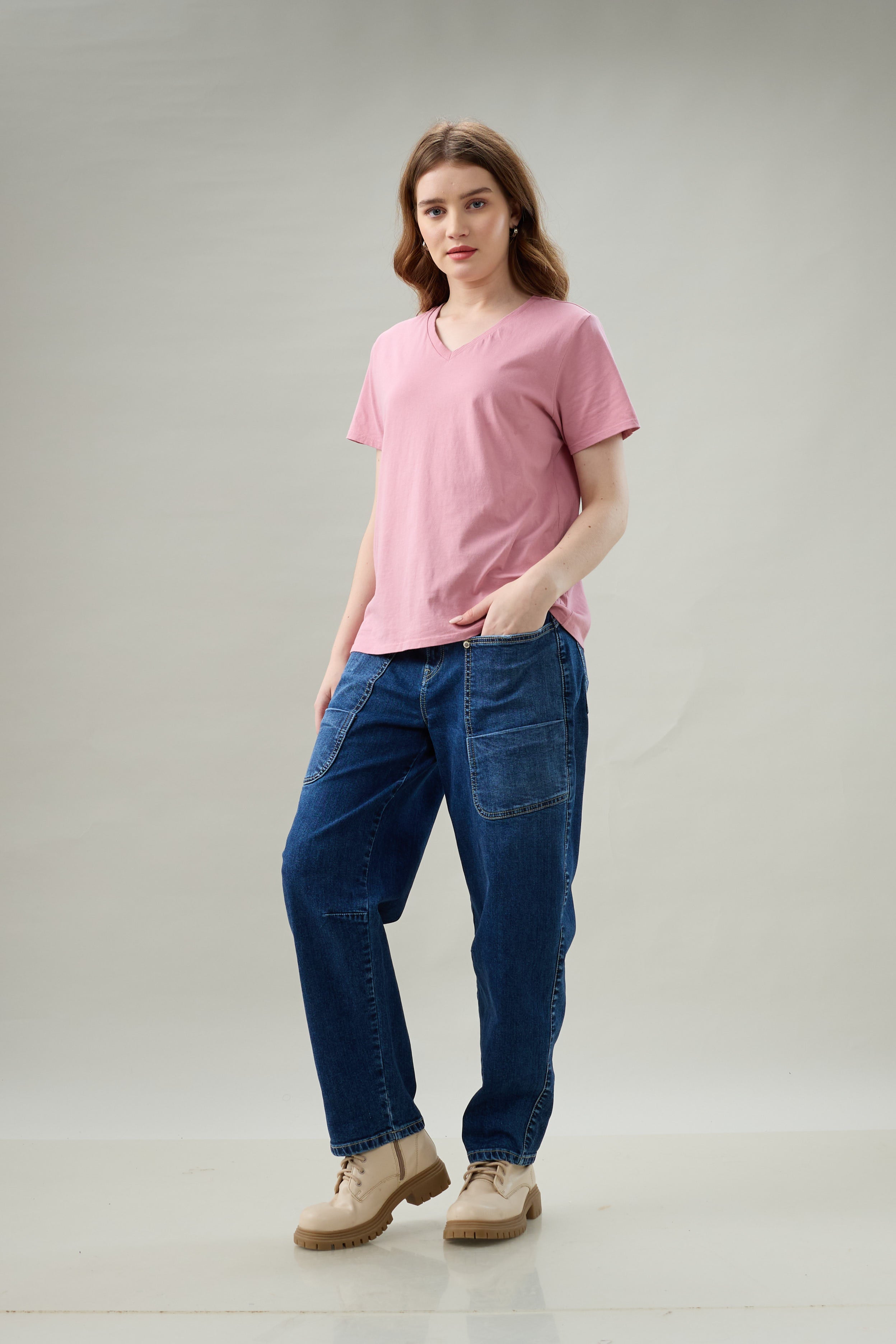 Designed for everyday comfort with a modern edge, these relaxed-fit jeans are made from soft, durable denim that moves with you. The straight-leg silhouette offers a flattering, easy drape, while the utility-inspired front pockets add both function and style. Finished with a mid-rise waist and classic five-pocket construction, this pair is perfect for effortless, all-day wear. Dress them up with a structured top or keep it casual with a tee, these jeans are a reliable go-to for any wardrobe.